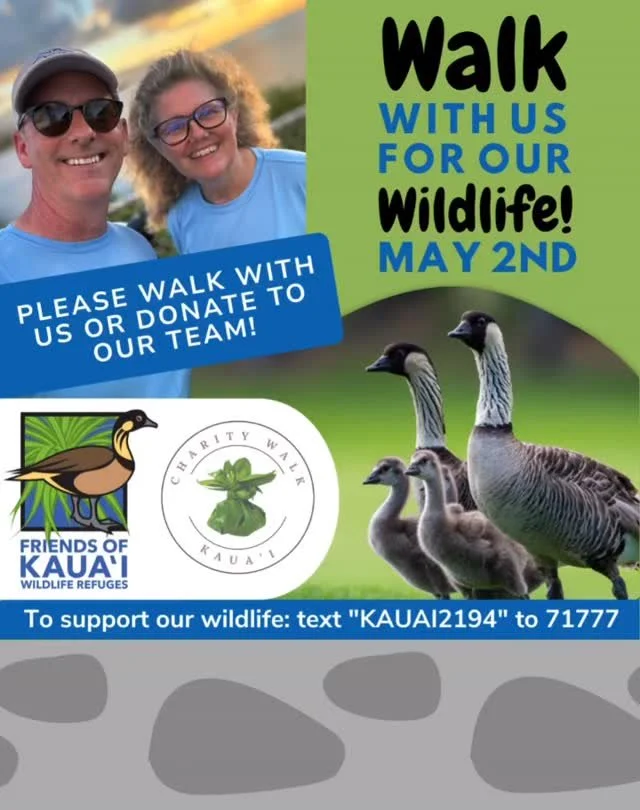 Friends of Kauaʻi Wildlife Refuges is participating in the 2026 Kauaʻi Charity Walk on Saturday, May 2, 2026 at Vidinha Stadium. This event provides a great opportunity to support our mission, make your generosity go even further and, if you’re interested, a wonderful stroll around Līhu‘e!